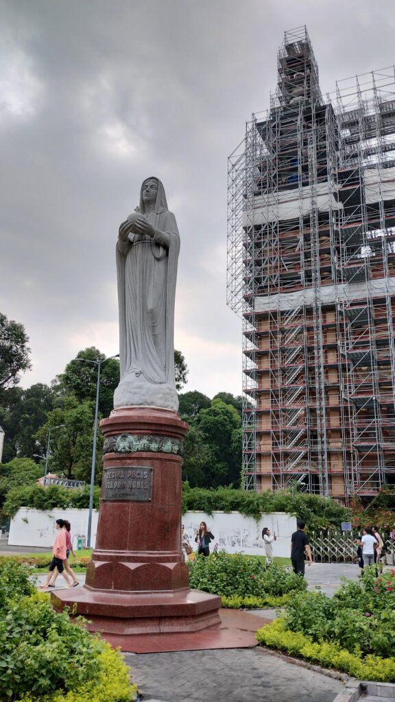 マリア様のうしろのガンガンに足場が組まれている建物がサイゴン大教会です。もうなんていうか一分の隙もなさすぎて、教会の全体像を撮ってすらない。笑